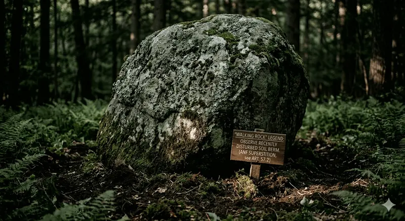 While we’ve discussed the Invisible Line (see Art. 21.1), there is a local "superstition" about the boulders themselves. Some hunters swear that certain large, moss-covered granite boulders in the forest shift positions. They call them "Walking Rocks." Geologically, this is impossible, but the legend likely stems from the "creeping" of the soil on steep slopes, which can move massive stones a few inches over centuries—or perhaps it's just the Jo-ga-oh (see Art. 51.2) playing tricks on a tired hiker’s sense of direction.