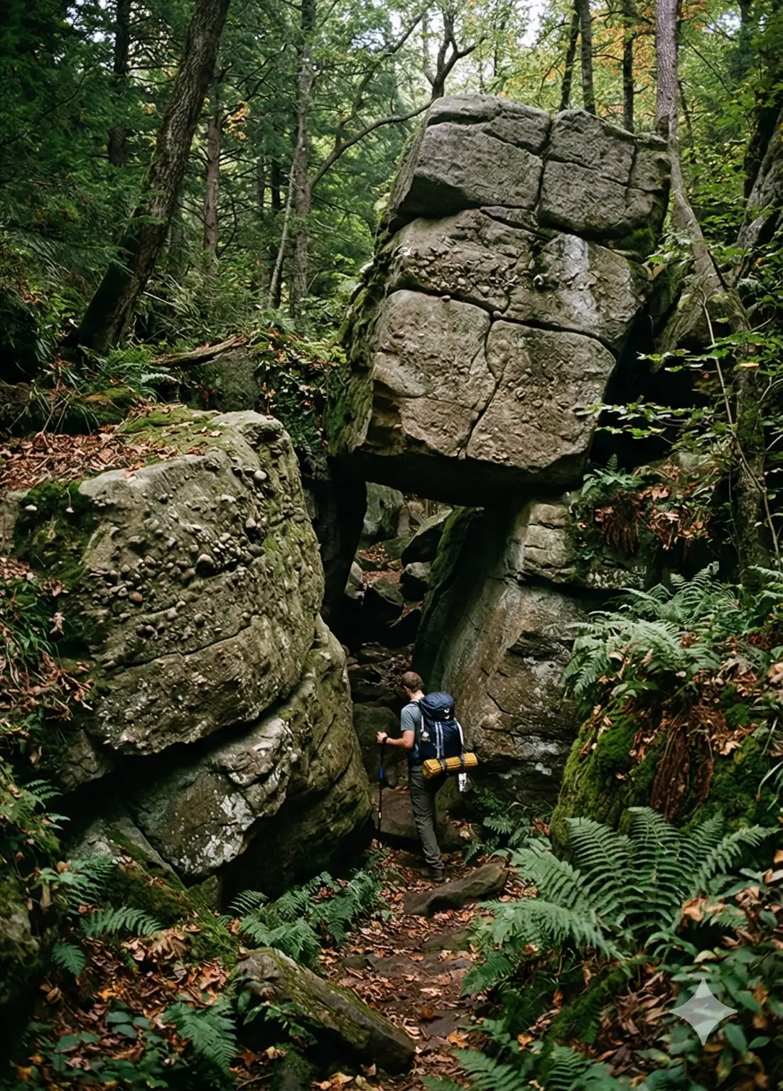 This process, known as **frost wedging**, birthed the region’s famous "Rock Cities." At sites like **Jakes Rocks** and **Beartown Rocks**, house-sized blocks of Quartz Conglomerate were pried loose from the plateau. Over millennia, these monoliths began a "slow-motion crawl" downslope, sliding on a layer of saturated, frozen soil. Today, they stand as silent, moss-covered labyrinthine alleys that feel more like ruins of an ancient civilization than a freak of nature.