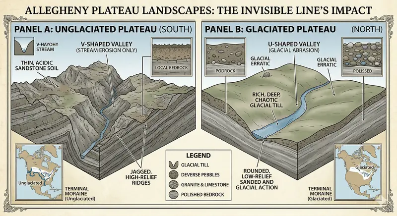There is a place in the Allegheny National Forest where the world changes in the span of a single step. To most drivers on Route 6 or hikers on the North Country Trail, the rolling hills and deep woods of the plateau seem uniform. But to those who know what to look for, there is an "Invisible Line"—the Terminal Moraine—that marks the exact point where a mile-high wall of ice finally ran out of steam.